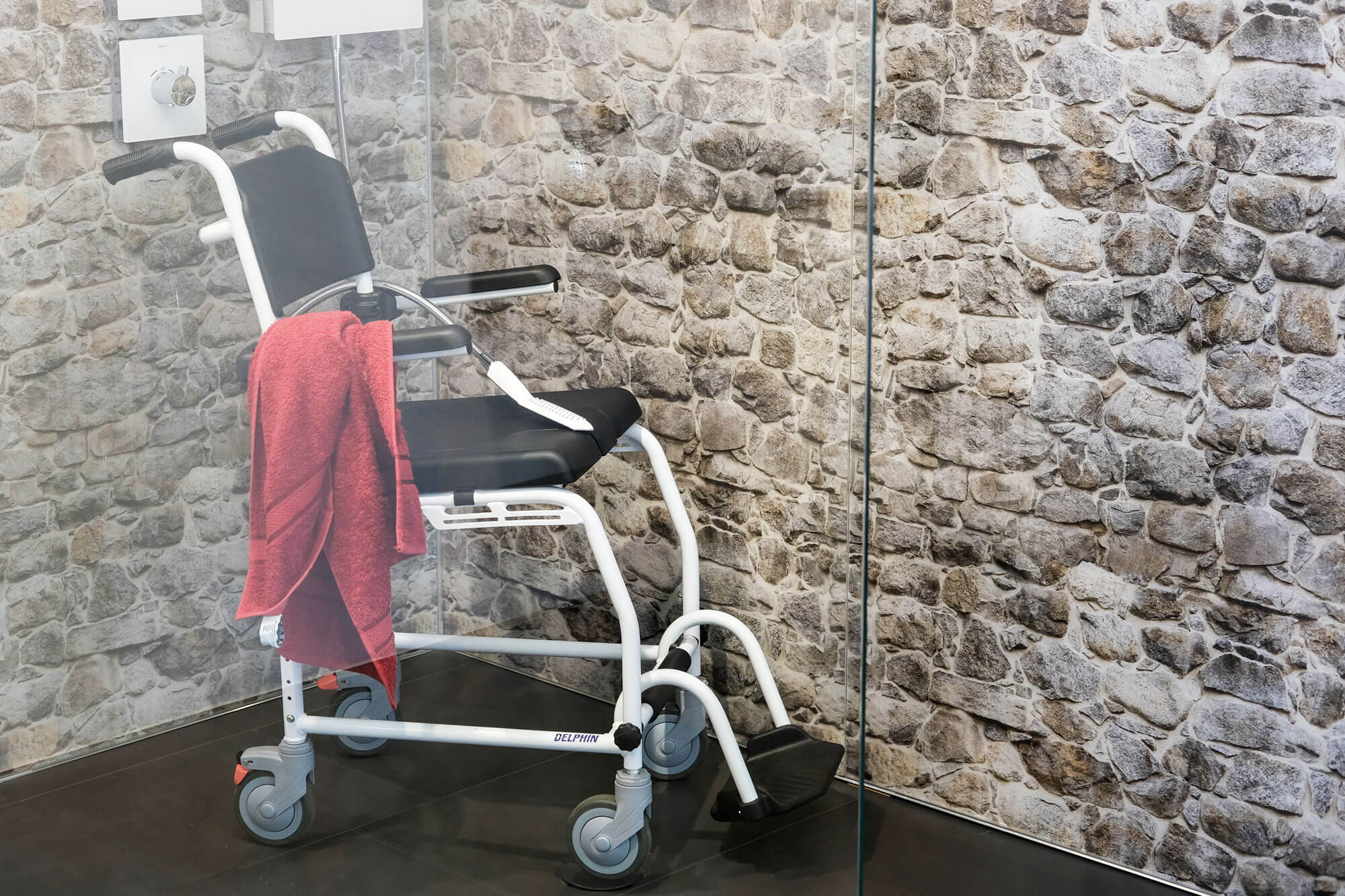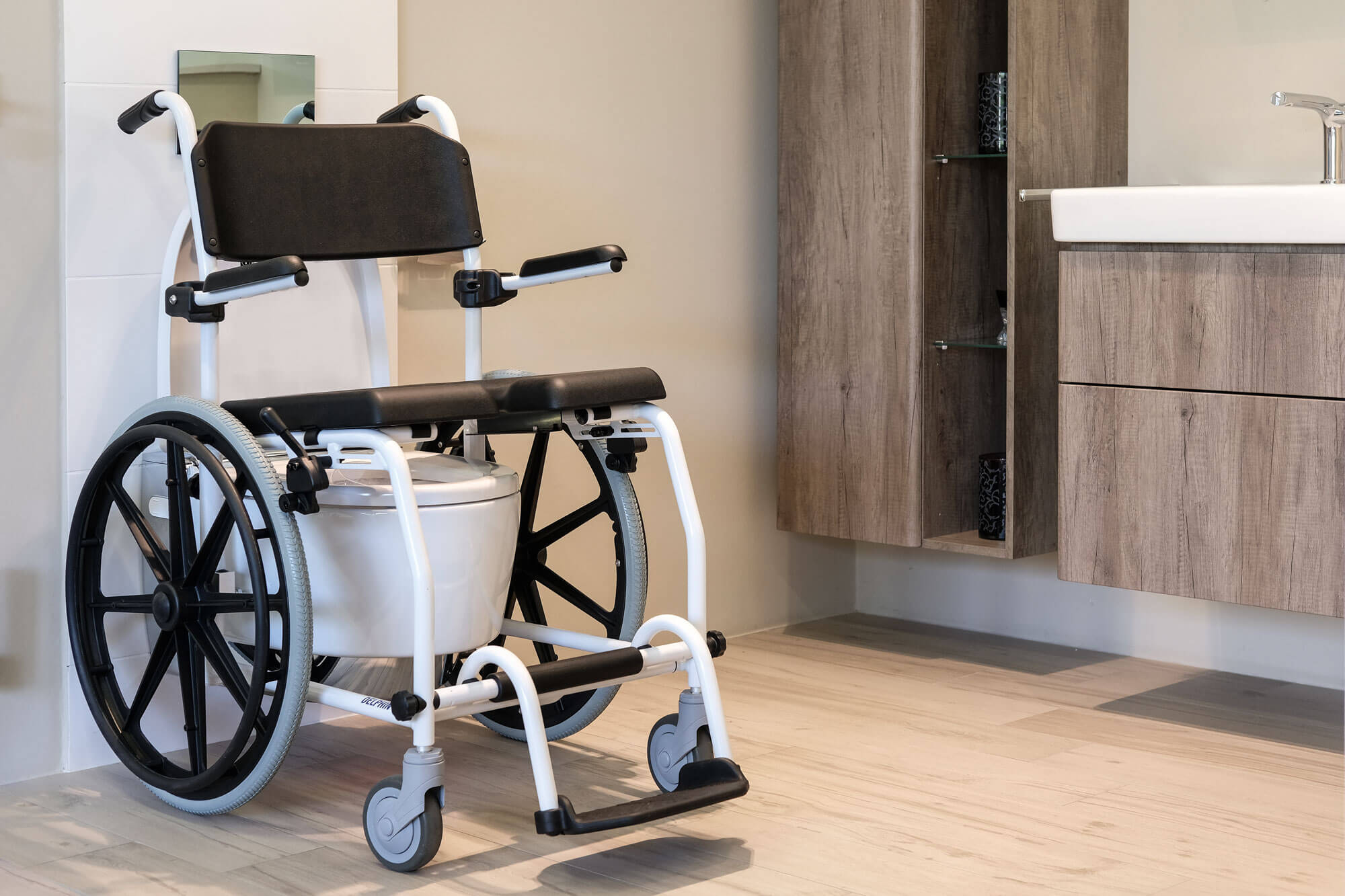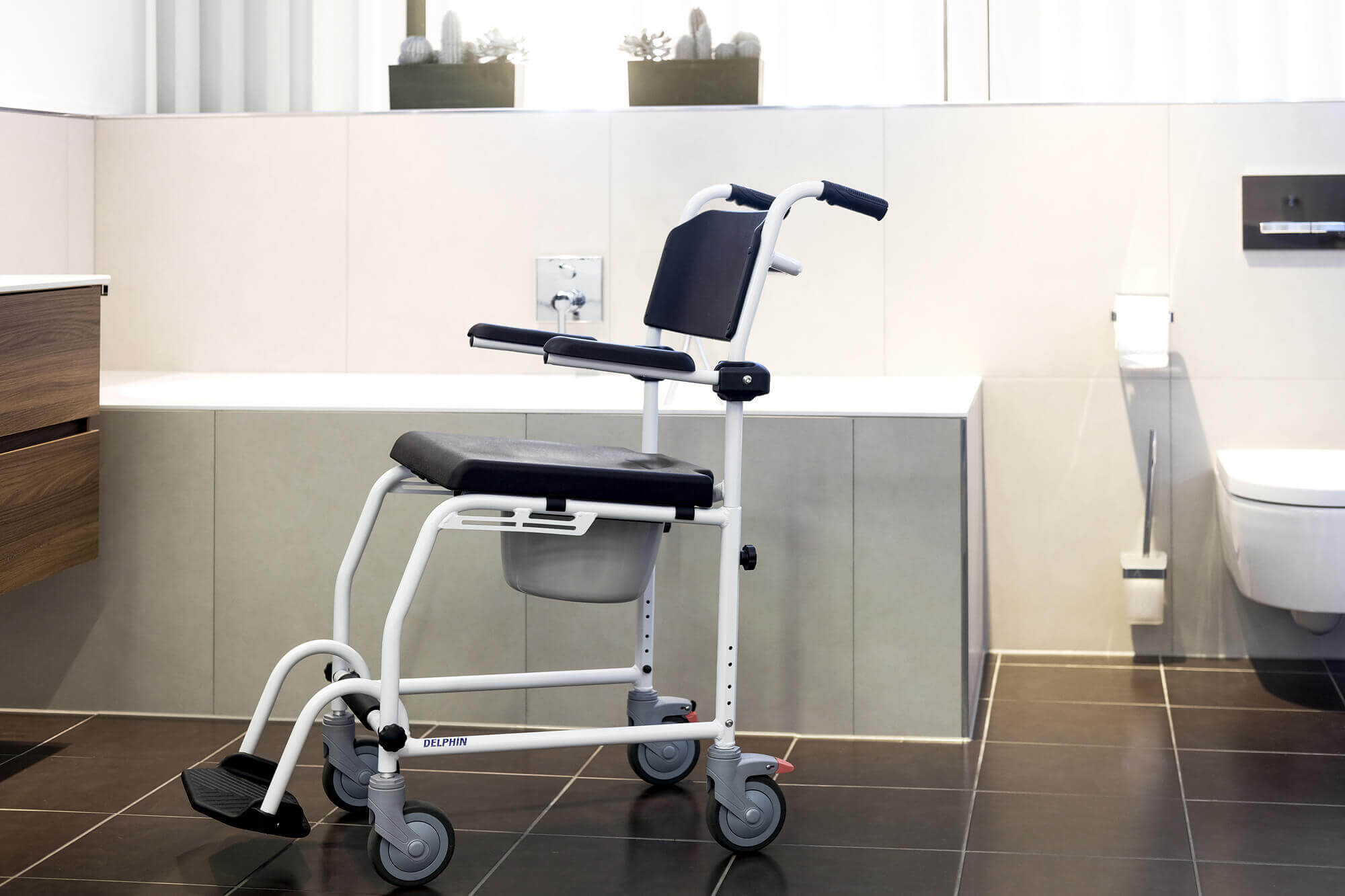 Der Gang zur Toilette oder ein angenehmer Duschgang können unter Umständen zu einer richtigen Herausforderung werden. Der Delphin Toiletten-, Transport- und Duschrollstuhl wurde entwickelt, um Ihnen dabei zur Seite zu stehen. Das Resultat lässt sich sehen: Ein Duschrollstuhl mit hautfreundlichen Materialien und abgerundeten Kanten für weniger Verletzungsgefahr beim Toiletten- und Duschgang.