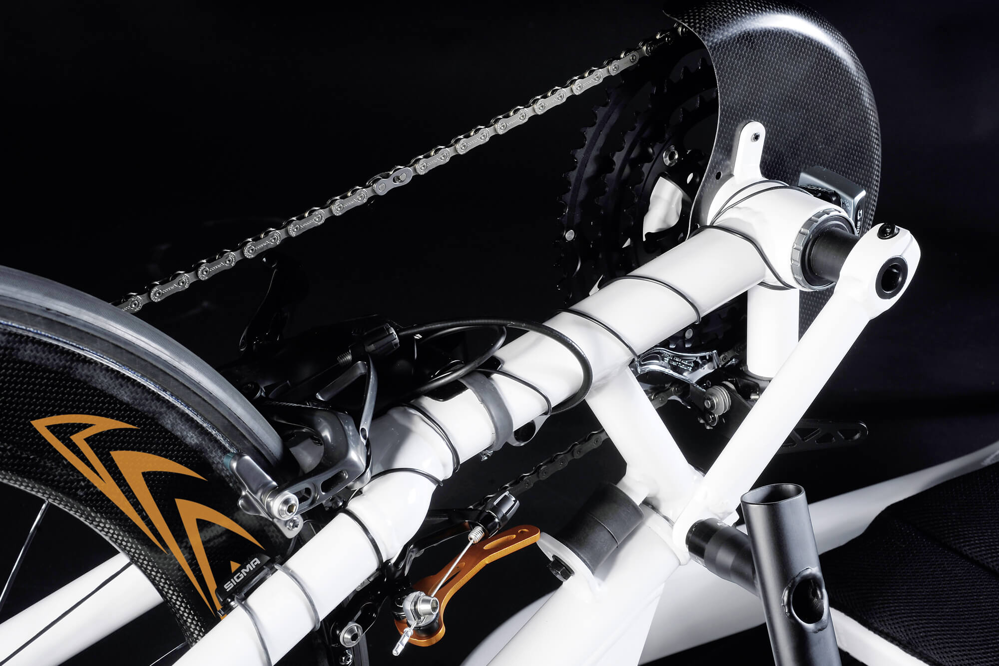 Das innovative Rahmendesign ermöglicht beste individuelle Positionierung. Der Rahmen umschliesst den Fahrer. Dort, wo die Kraft eingeleitet wird, wird sie direkt in Vortrieb umgesetzt.